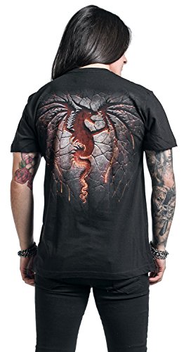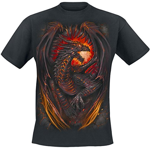 -. Feature : Spiral T-Shirt Dragon Furnace für Männer / schwarz / Normal geschnitten
