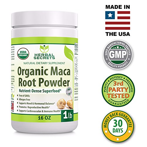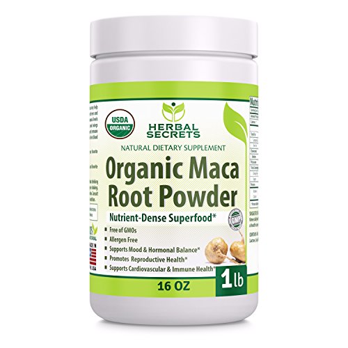 Herbal Secrets USDA Certified Organic Maca Root Powder- 16 oz (1 lb)- GMO FREE- Supports Healthy Mood, Hormonal Balance, Cardiovascular Health & Immune Health
