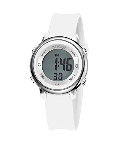 -. Feature : Water resistant to 50 meter: In general, withstands splashes or brief immersion in water / FUNCTIONS: LED display, Date/Week/Time, Stopwatch, Alarm clock, EL night-light, Chime / 34mm/1.34inches dial, 15mm/0.59inches thickness of watch / High quality soft resin band; Band length 8.5 inches / Sports watch for kids