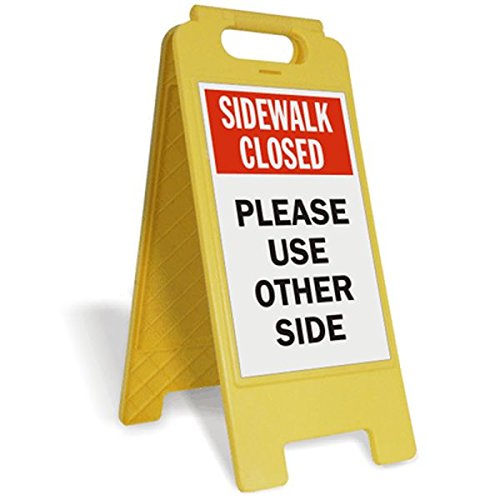 SmartSign Folding Floor Sign, Legend "Sidewalk Closed - Please Use Other Side", 25" high x 12" wide, Black/Red on White