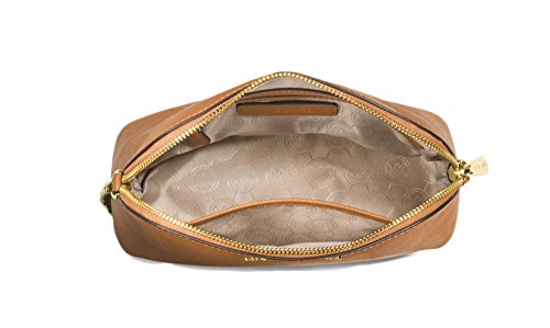 -. Feature : 100% Cow Leather; Gold-Tone Hardware / Interior: One Zip Pocket, One Open Pocket / Lining: 100% Polyester / Adjustable Drop: 23"-25" / 8.8''W X 7'H' X 3.5''D