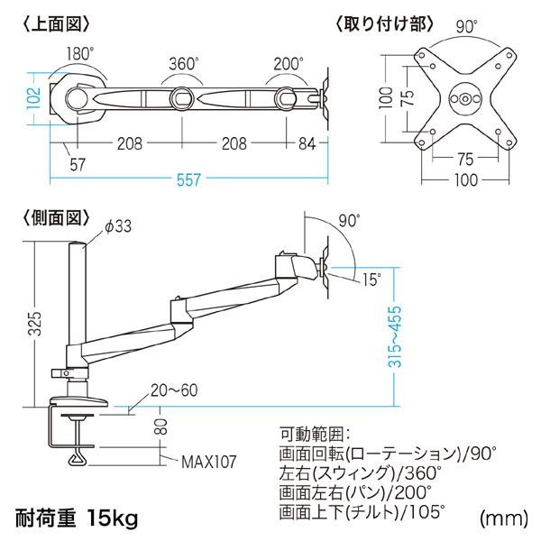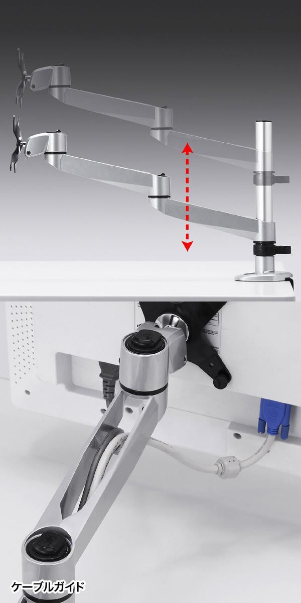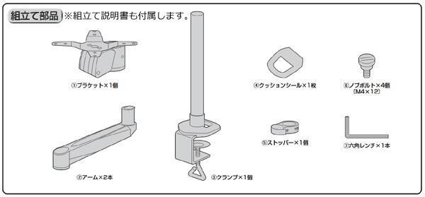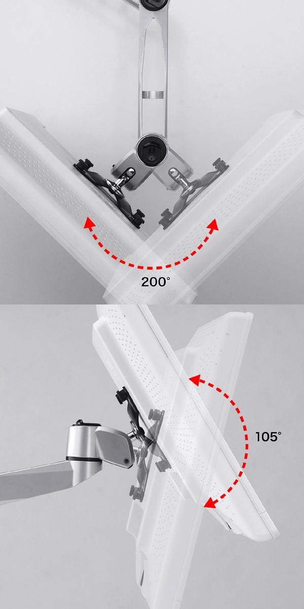 | 素材・材質 | 本体アーム・ポール:アルミ ディスプレイ固定プレート:スチール(エポキシ樹脂粉体塗装) 樹脂パーツ:ABS樹脂 |