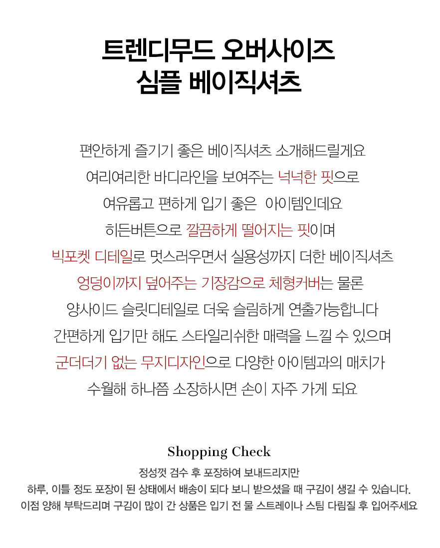 .같은 사이즈라도 체형에 따라 핏감이 조금씩 다를 수 있습니다.