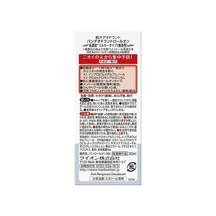 원본상품명: バン デオドラントロ?ルオン 高濃度ミルキ?タイプ 30ml【HTRC3】