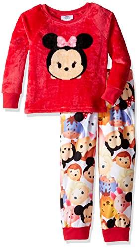 Disney Big Girls' Tsum Tsum Luxe Plush 2-Piece Pajama Snuggle Set, Red, 8