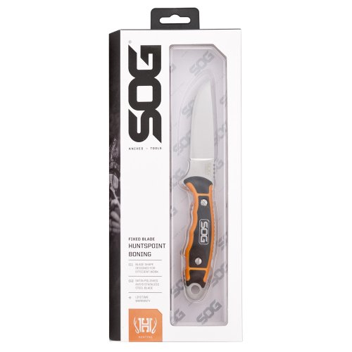 Boning knife has a 3.6-inch fixed blade, drop point shape and crafted from AUS-8 stainless steel with a satin finish