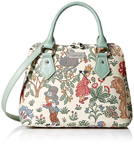 Signare Tapestry Top Handle Handbag with Detachable Strap to Convert to Shoulder Bag in Alice in Wonderland Design (CONV-ALICE)