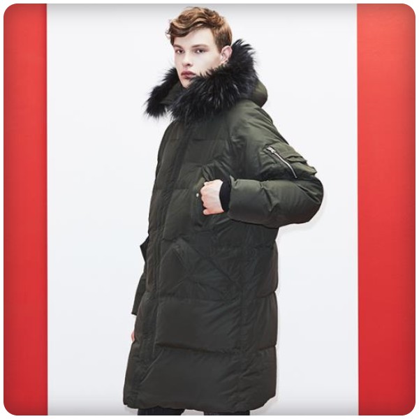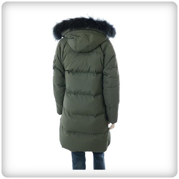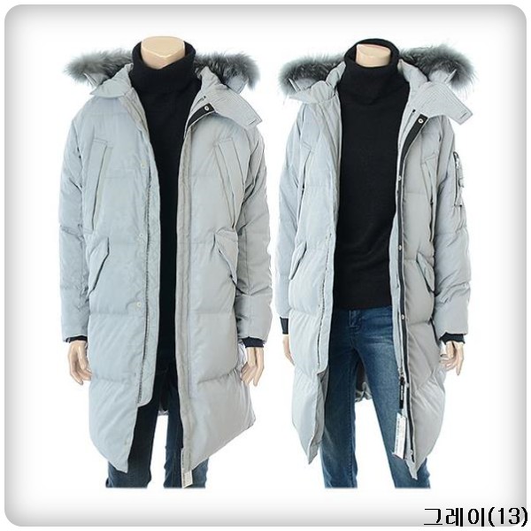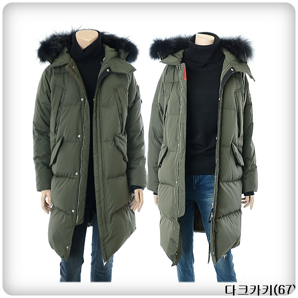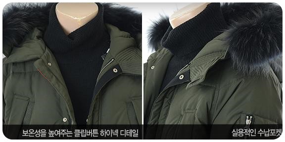 겉감_폴리에스터100% 안감_폴리에스터100% 배색_폴리에스터87% 폴리우레탄13% 충전재_오리솜털80% 오리깃털20% 후드트리밍_너구리털100%