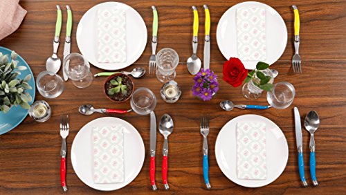 - Stainless steel with nice looking colorful ABS plastic handles, delightful to use on your own dining table.