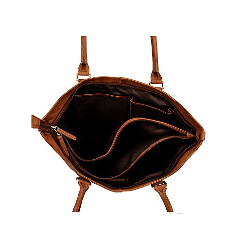 Finelaer Genuine Leather Work Tote Shoulder Bag Purse Organizer for Women with Zipper Brown