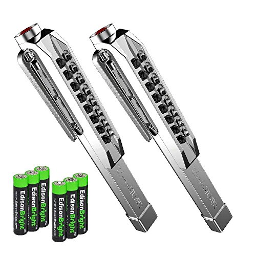 Nebo 6194 Larry Silver 100 Lumen LED pocket Worklight 2 Pack with 6 X EdisonBright AAA alkaline batteries