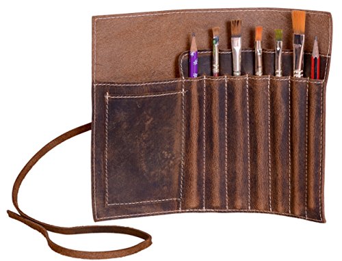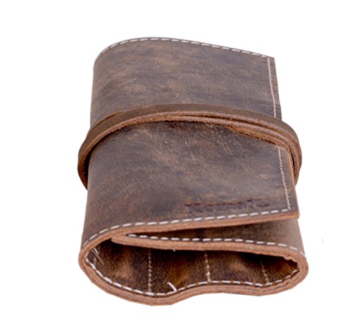 KomalC leather Pen case Pencil holder leather stationary case pouch for students and artists KOMALC Genuine Leather Pen Pencil Roll - Pen and Pencil Case pouch