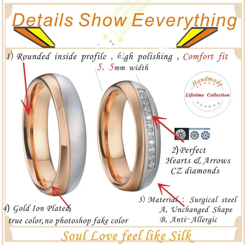 Model Number:PV1501Rose wedding rings