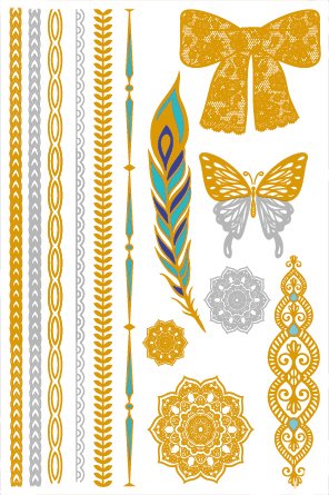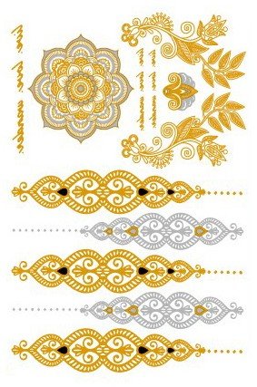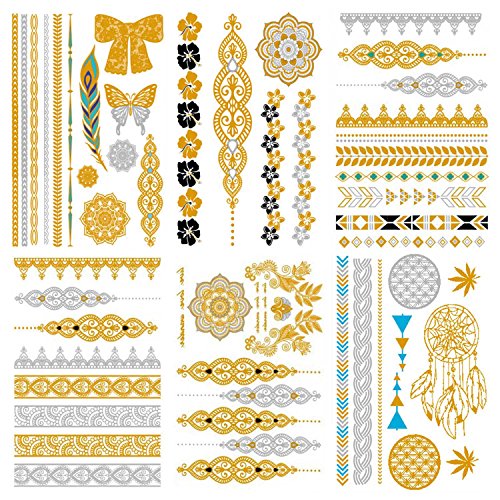 COKOHAPPY 6pcs Premium Metallic Tattoo - 60+ Mandala Designs in Gold and Silver - Temporary Fake Shimmer Jewelry Tattoo - Flowers, Feathers, Bracelets,...