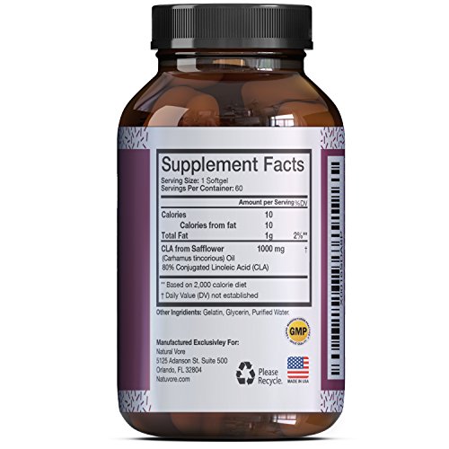 -. Binding : Health and Beauty -. Brand : Natural Vore -. Feature : Conjugated Linoleic Acid are pure and potent weight loss pills - natural ingredients found in the Safflower as well as other products such as cheese and beef / CLA is a powerful antioxidant and this supplement is an excellent and efficient way to get more of the important substance into your body - this can help to boost your immune system / These Conjugated Linoleic Acid pills can help you to burn belly fat - these have even been used as an energy booster - helps users to build and retain lean muscle / CLA complex for men and women can be used to lower insulin resistance - this will help you to control your weight levels - and can be used to help boost the immune system / Each Conjugated Linoleic Acid 1000 capsule contains 780 mg of CLA complex + 150 mg Oleic Acid + 30 mg Palmitic Acid + 30 mg Stearic Acid + 10 mg Linoleic Acid - these are all natural ingredients -. IsAdultProduct : 0 -. Label : Nature Vore -. Manufacturer : Nature Vore -. MPN : LE -. PackageQuantity : 1 -. PartNumber : LE -. ProductGroup : Health and Beauty -. ProductTypeName : HEALTH_PERSONAL_CARE -. Publisher : Nature Vore -. Studio : Nature Vore -. Title : Pure And Potent CLA Safflower Oil - Natural Weight Loss Pills For Men And Women - Conjugated Linoleic Acid Supplement - Burn Belly Fat And Boost Metabolism - CLA Complex 1000 mg By Natural Vore