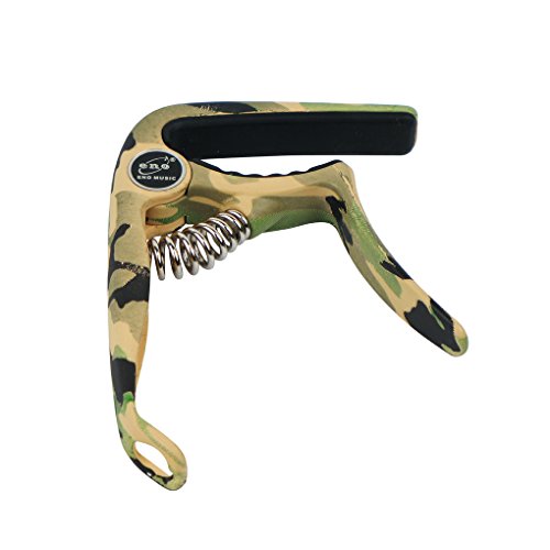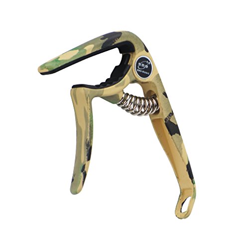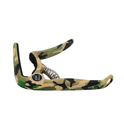 Product Description Feature:* The capo has a great performance for all kind of guitar,can clamp firmly onto most fretboards without buzz or loss of tuning.* With smooth surface and ergonomic handle,it is made of high quality PVC Plastic, lightweight but durable.* Strong spring is made of stainless steel,with great acid resistance,will help hold all of the strings down.* Soft silicone padding helps to protect the strings and fretboard without compromising on the quality of pitch and tone.* Easy to use,quickly and easily released and repositioned without disturbing the tuning. Can be repositioned with just one hand.Including one string pin puller at the end of the handle, which can help you to remove string pins without making damage to your guitarSpecification:Fits for all kind of electric, acoustic and classical guitarMaterial: High Quality Metal Zinc Alloy with steel spring soft silicone pad.Color: Camouflage GreenPackage include:1 x Packaged Guitar Capo 0