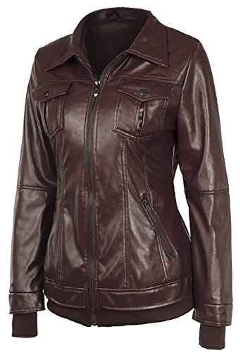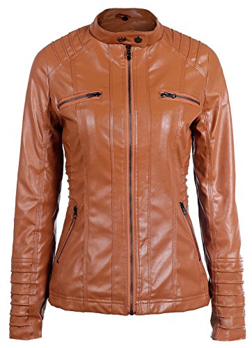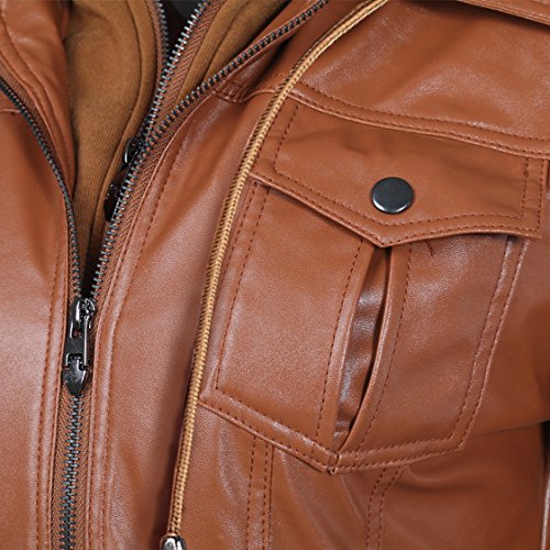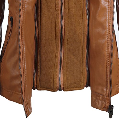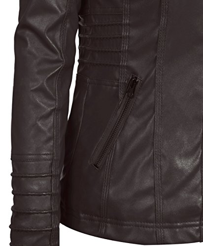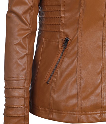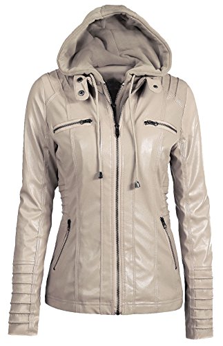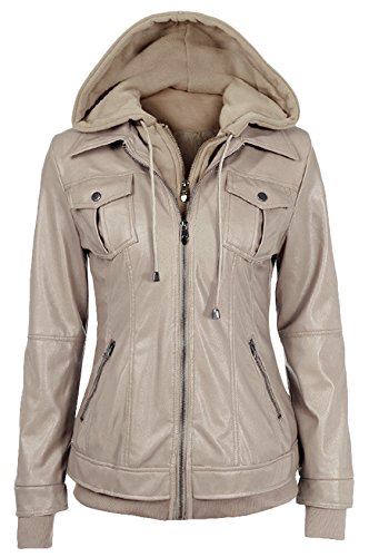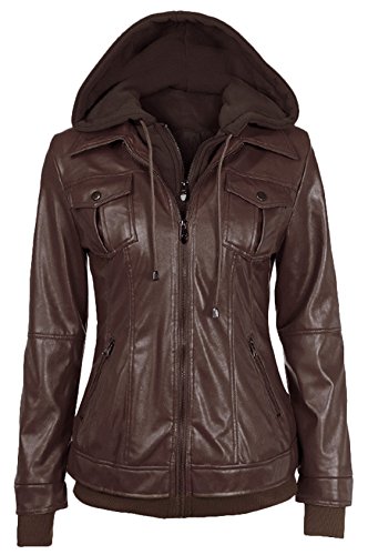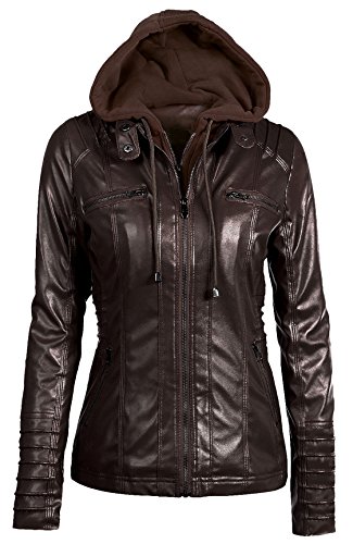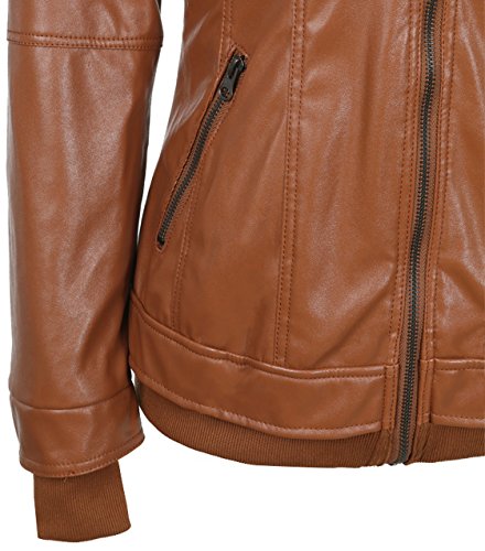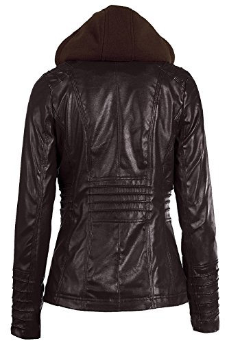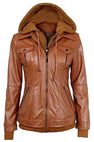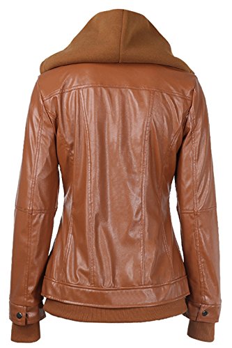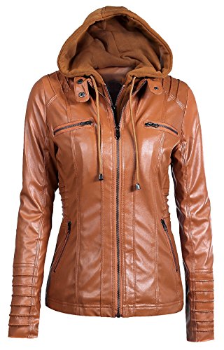 Youhan Women's Fitted Hooded Faux Leather Jacket