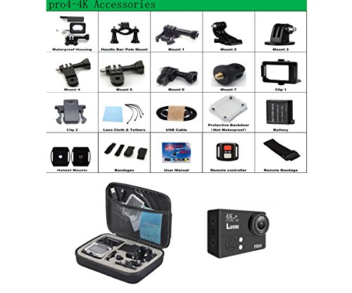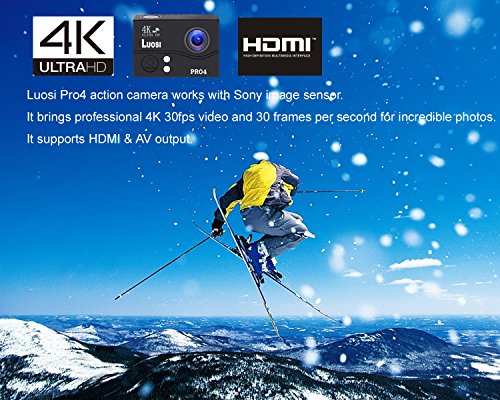 LUOSI 4K WIFI Waterproof Sports Action Camera Ultra HD 20MP Wide Angle Lens Sony Sensor 2.0 Inch LCD Display Rechageable 1500mAh Battery Portable Package