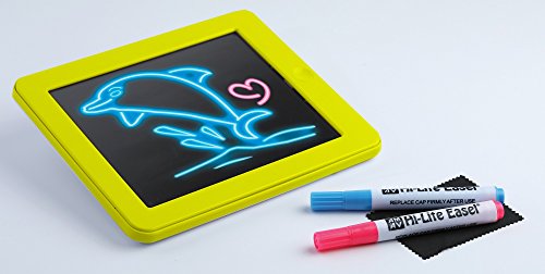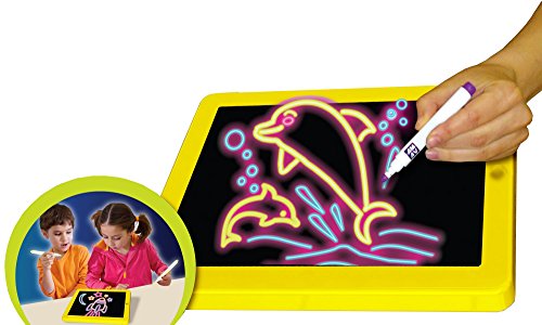 The Glow Pad Light Up Drawing Board is approximately 9 1/2" x 8" (3/4" thick) It has 7 interchanging colors and patterns. The children will draw and light up the Glow Pad. It automatically shut off while not in use, and marker cleans off screen easily. Includes 2 Special Markers, Wipe-off Cloth, & Simple Instructions. Requires 3 AAA Batteries (Not Included)Feature