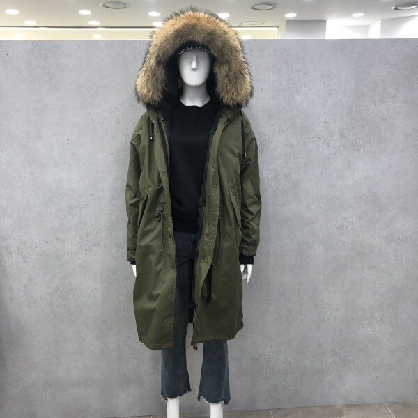야상의 대표 브랜드 카이아크만 라쿤 야상입니다 안감과 후드 털 전체 탈부착 가능한 상품으로 오버핏 야상입니다 시즌별로 탈부착하여 이용하실수 있는 실용성 있는 아이템으로 출시되었습니다 넉넉하게 출시되었으며 마네킨 디피 사이즈 55 입니다