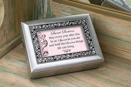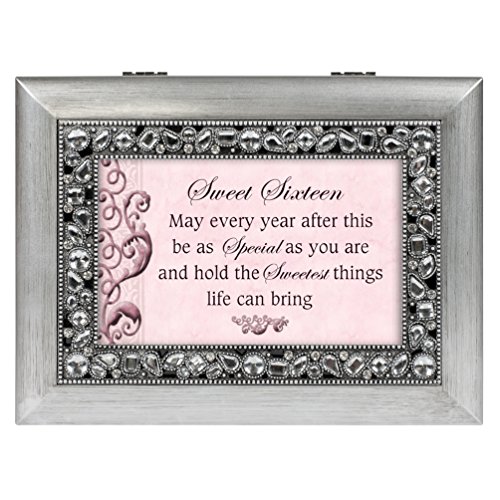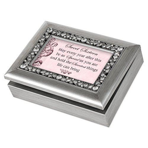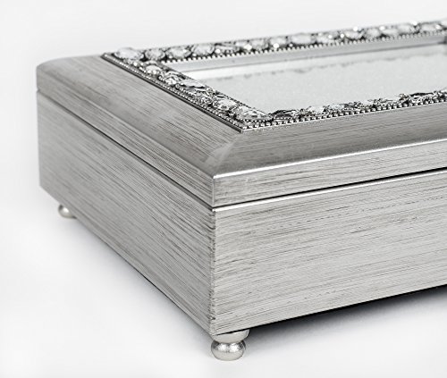 Studio : Cottage Garden, Inc. Publisher : Cottage Garden, Inc. Binding : Kitchen Product Description This beautiful jewelry music box has a beautiful brushed silver finish with a jeweled inlay design lid. It plays a high quality Sankyo music mechanism that can be seen on the inside of the box through protective glass. It has a 4x6 photo frame lid so the picture can be exchange for a personal photo. The feet are cushioned so they don't scratch surfaces. The box has a 4x4 inch cavity for storing jewelry and keepsakes. The inside is lined in nice black velvet. The hinges prevent the lid from falling all the way back and getting damaged when opened. This makes a beautiful gift for any age. 0