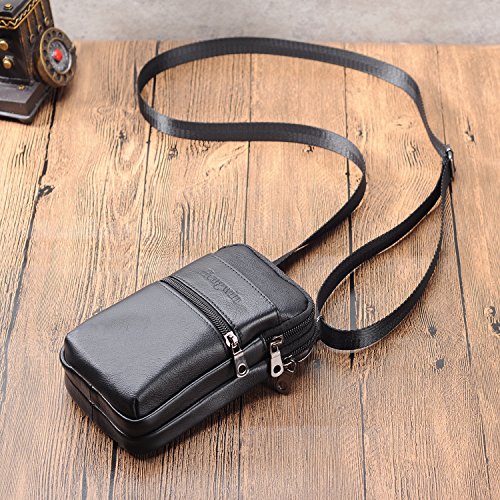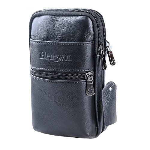 -. Title : Hwin men real leather belt clip holster Crossbody Waist Pack black Belt Bag with shoulder strap+Keychain