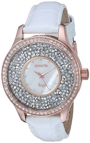 Invicta Women's 'Angel' Quartz Stainless Steel and Leather Casual Watch, Color:White (Model: 24588)