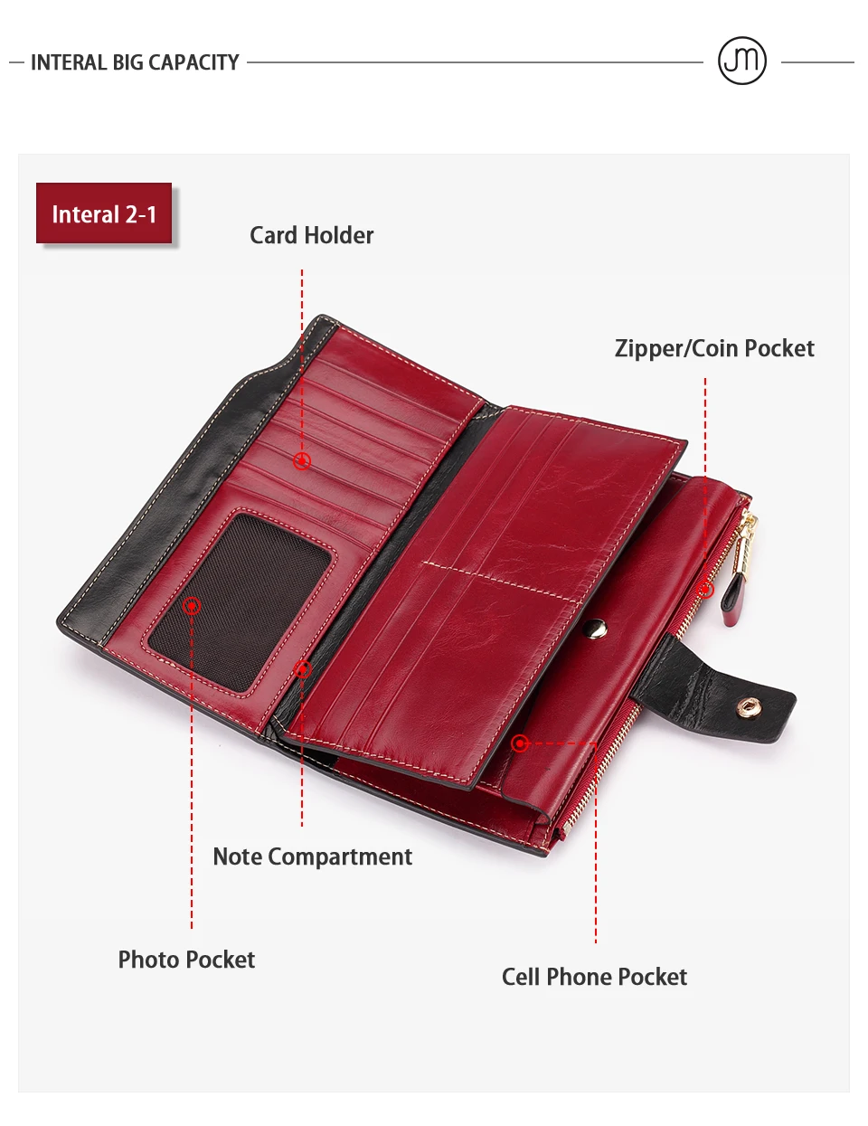 Interior:Interior Compartment,Interior Slot Pocket,Interior Zipper Pocket,Card Holder,Photo Holder,Note Compartment,Passcard Pocket,Cell Phone Pocket,Zipper Poucht,Coin Pocket