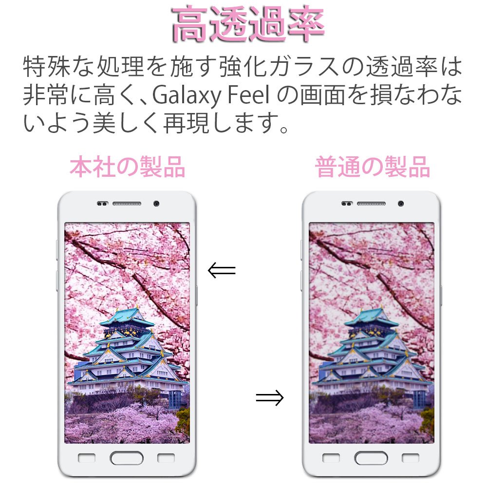 Transparency of tempered glass which performs special treatment is very high, and beautifully reproduces so as not to damage the screen of Galaxy Feel SC-04J.