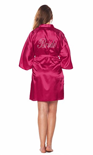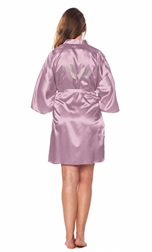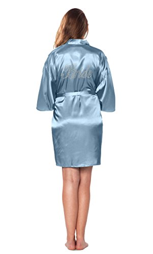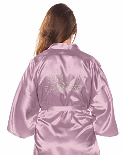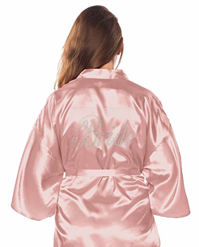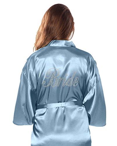 | (Turquaz Linen)/Women/Sleepwear/DIRECT FROM USA/Satin Kimono Clear Rhines tone "Bride" Robe |