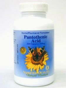 Product DescriptionPantothenic Acid 500 mg 100 capsules Ingredients: Pantothenic Acid 500 mg Calcium (pantothenate) 45 mg0