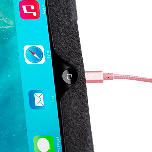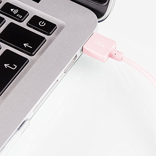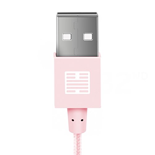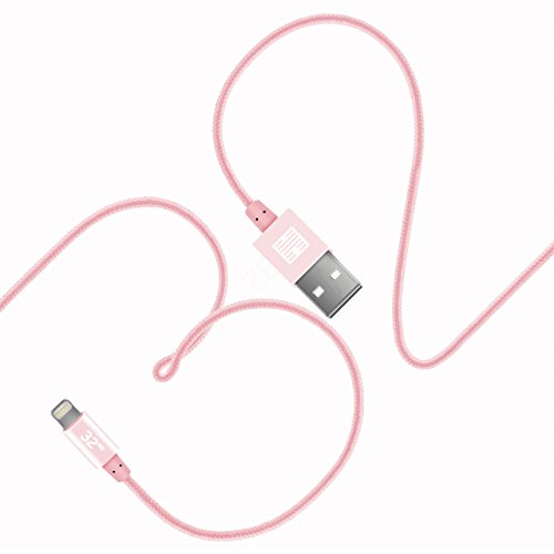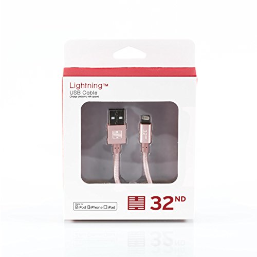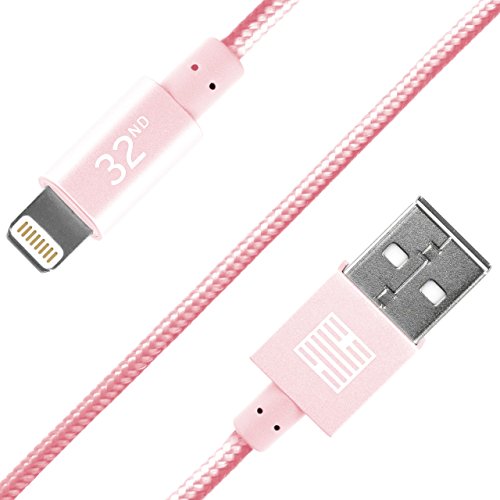 32nd® [MFI Certified] lightning to USB braided nylon data power charging cable for Apple iPhone iPad iPod 1.8 metre 1.8m 6ft - Rose Gold