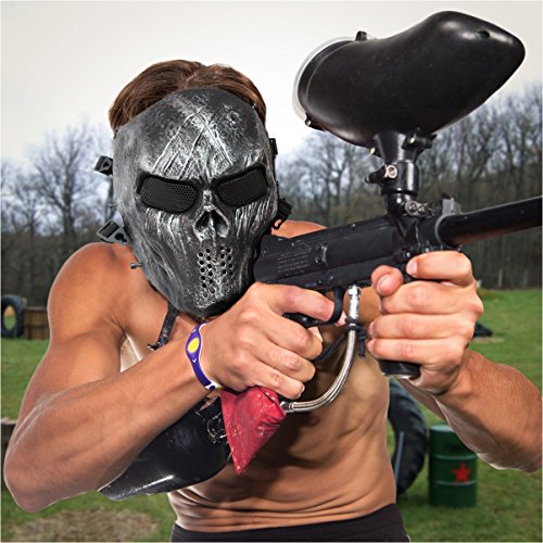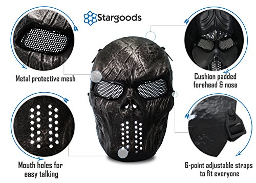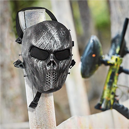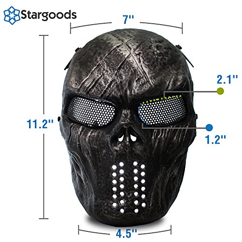 DESIGN: Made with durable and light plastic resin material with adjustable straps to fit everyone. It is also covered on the eyes for full protection. Cool predator style, comfortable and resistant.