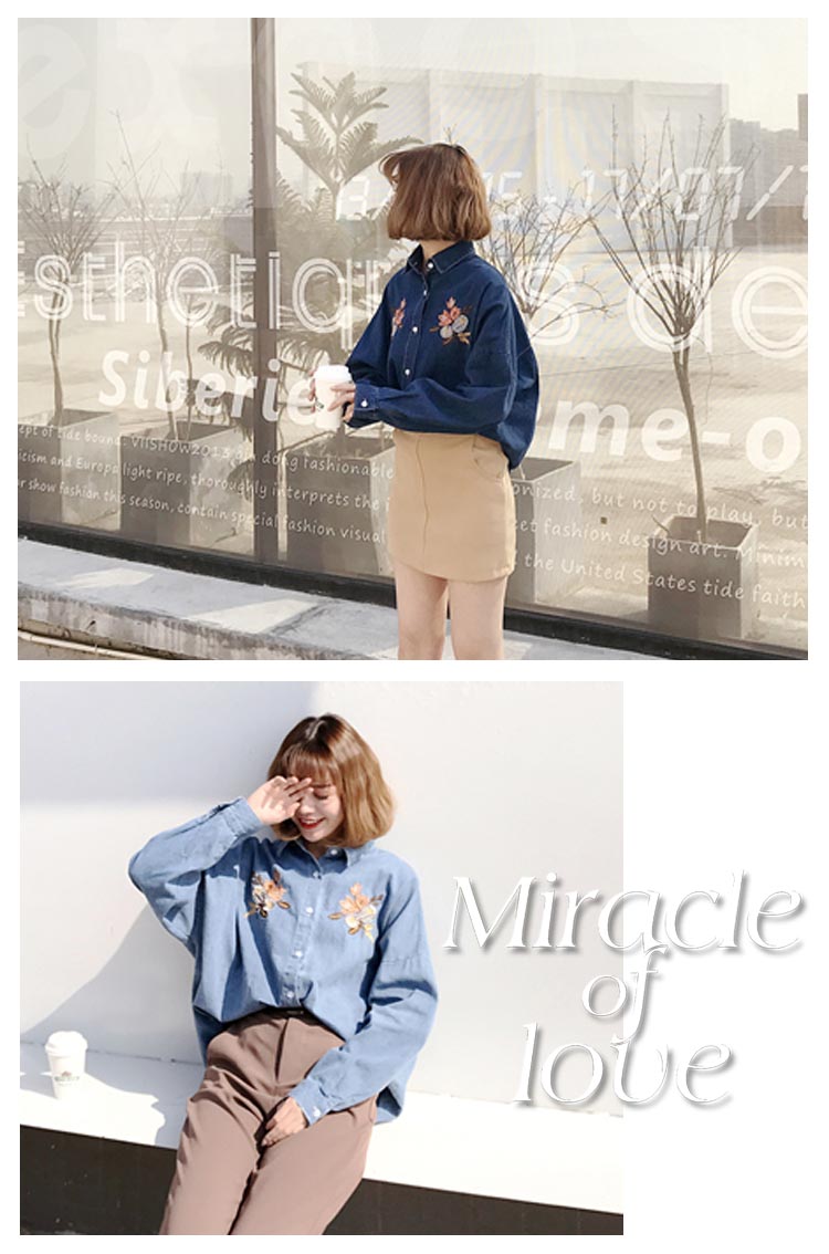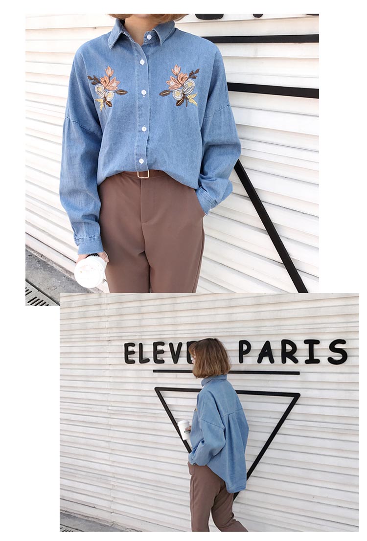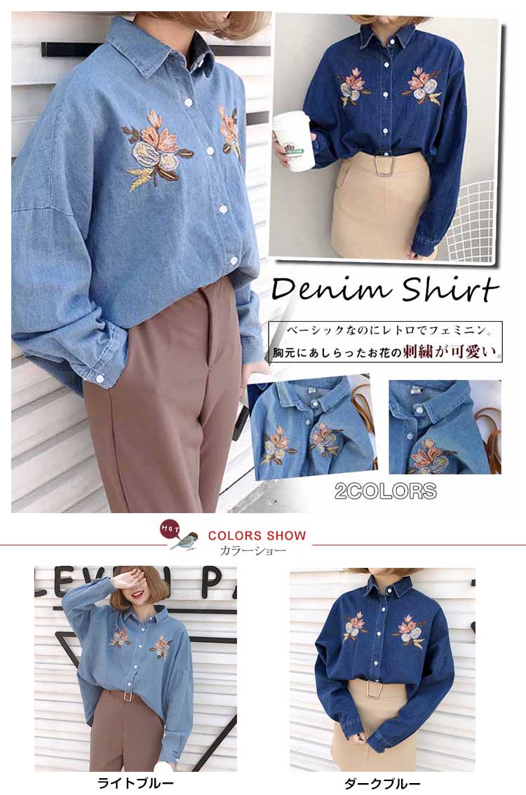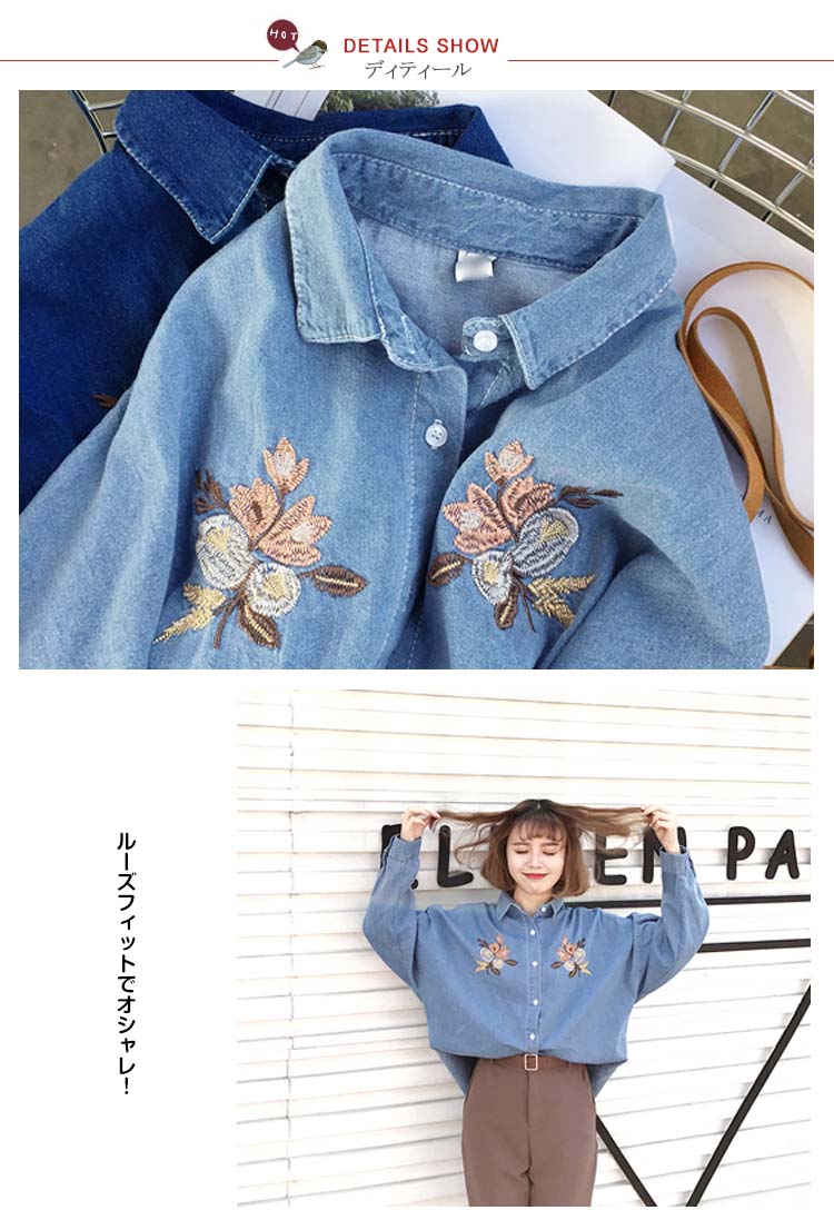 | ベーシックなのにレトロでフェミニン。胸元にあしらったお花の刺繍が可愛い。ウォッシュ加工を施したデニムシャツは、一気にこなれ感たっぷりな印象に☆シャツとして着るのはもちろん、軽い羽織としても重宝します♪ | |