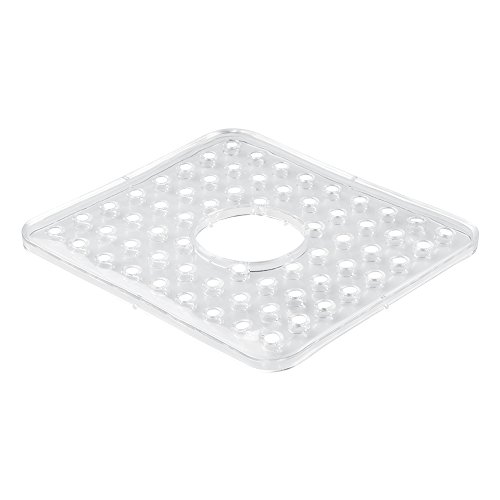 mDesign Kitchen Sink Protector Mat with Hole for Sink Strainer - Clear