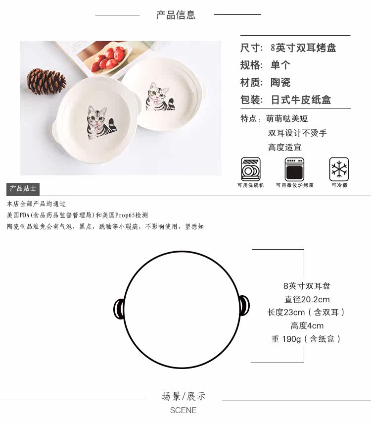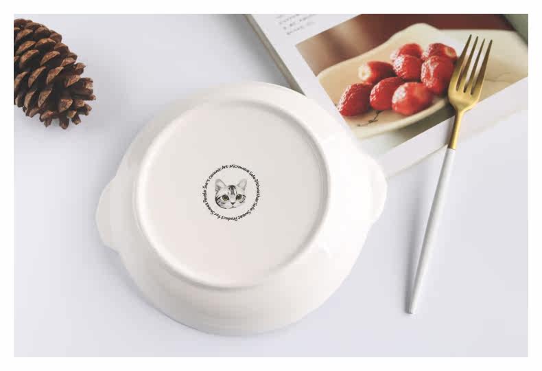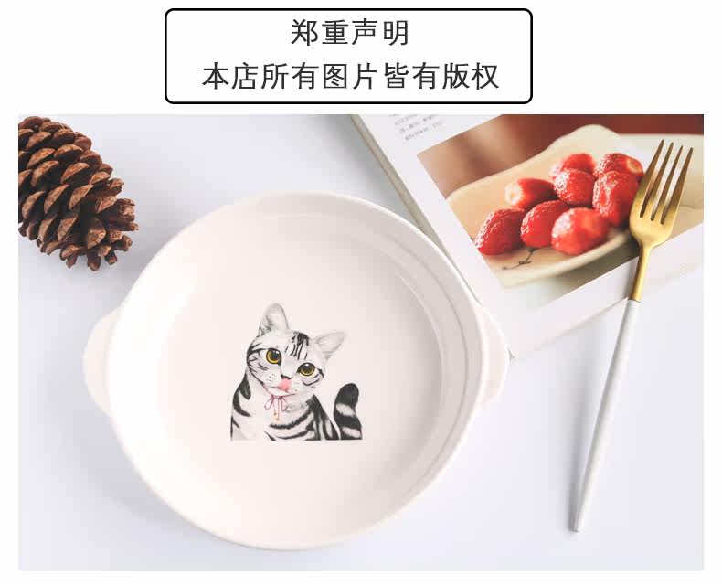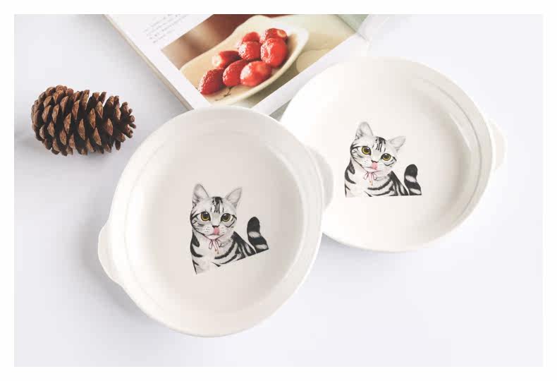 美短系列烤盘有把手陶瓷焗饭盘水果双耳烤箱餐具盘子烘焙芝士西餐