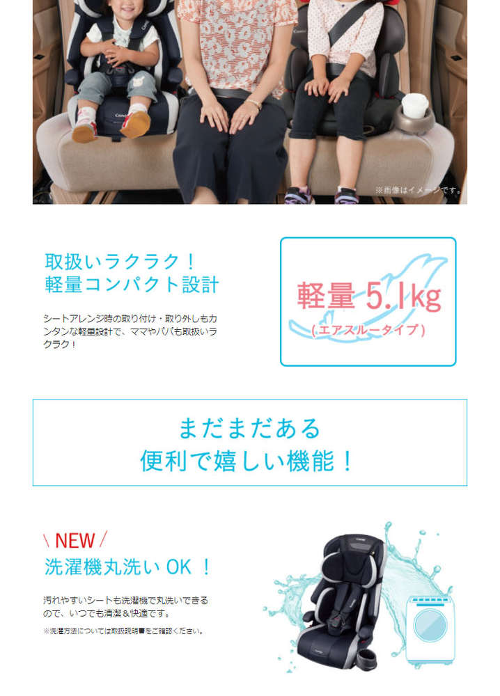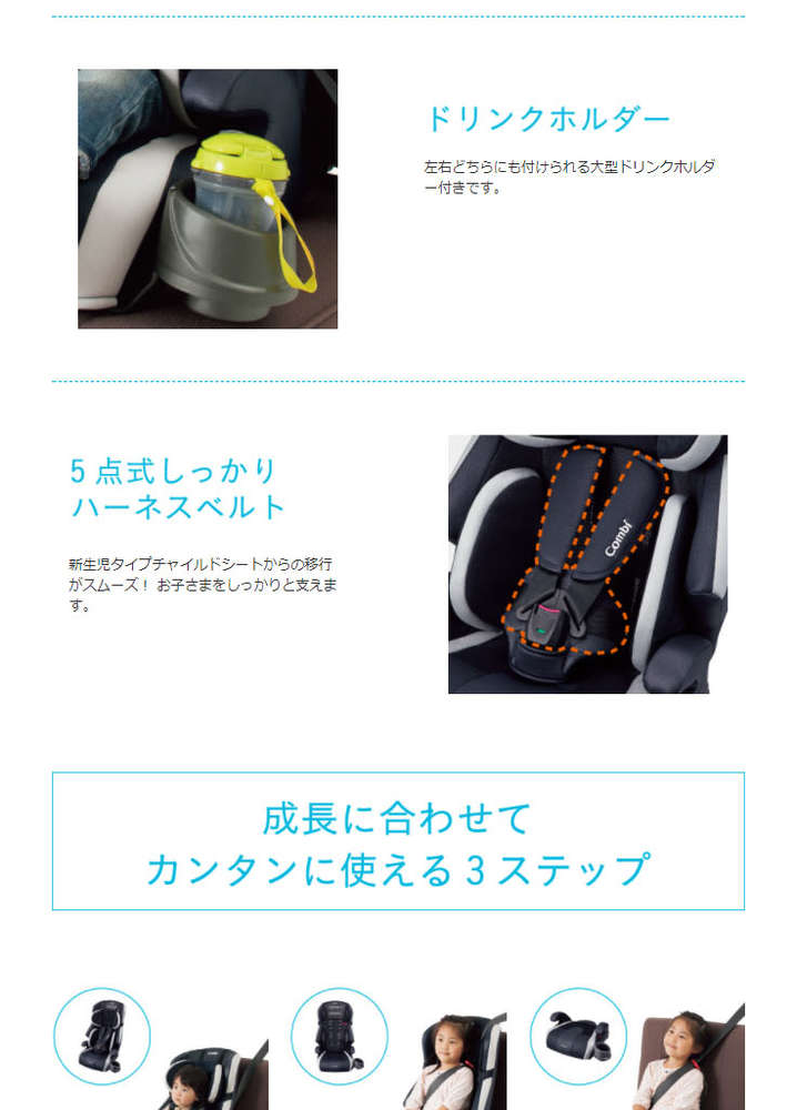 ●軽量・省スペース設計!3ステップでなが~く使えるチャイルド&ジュニアシート