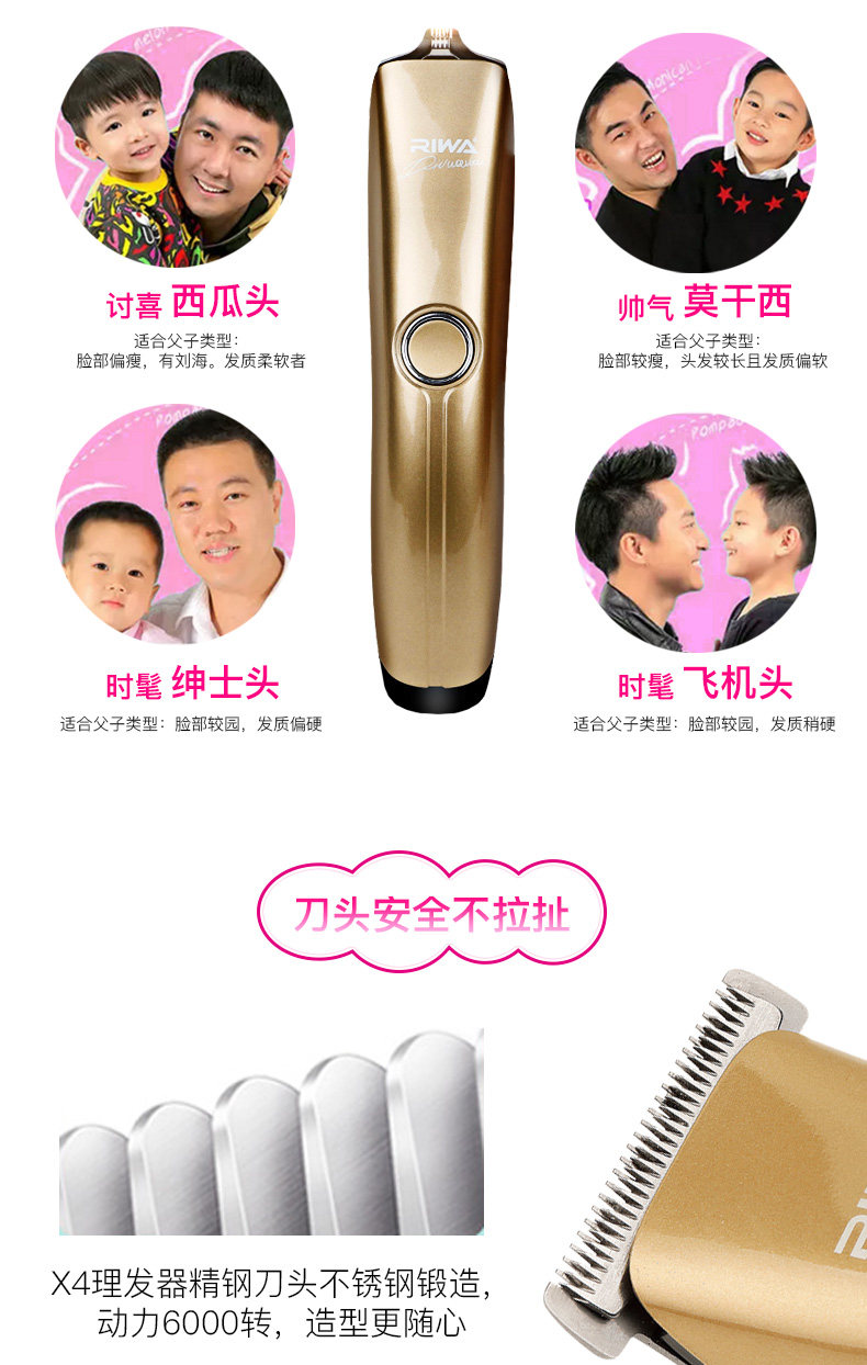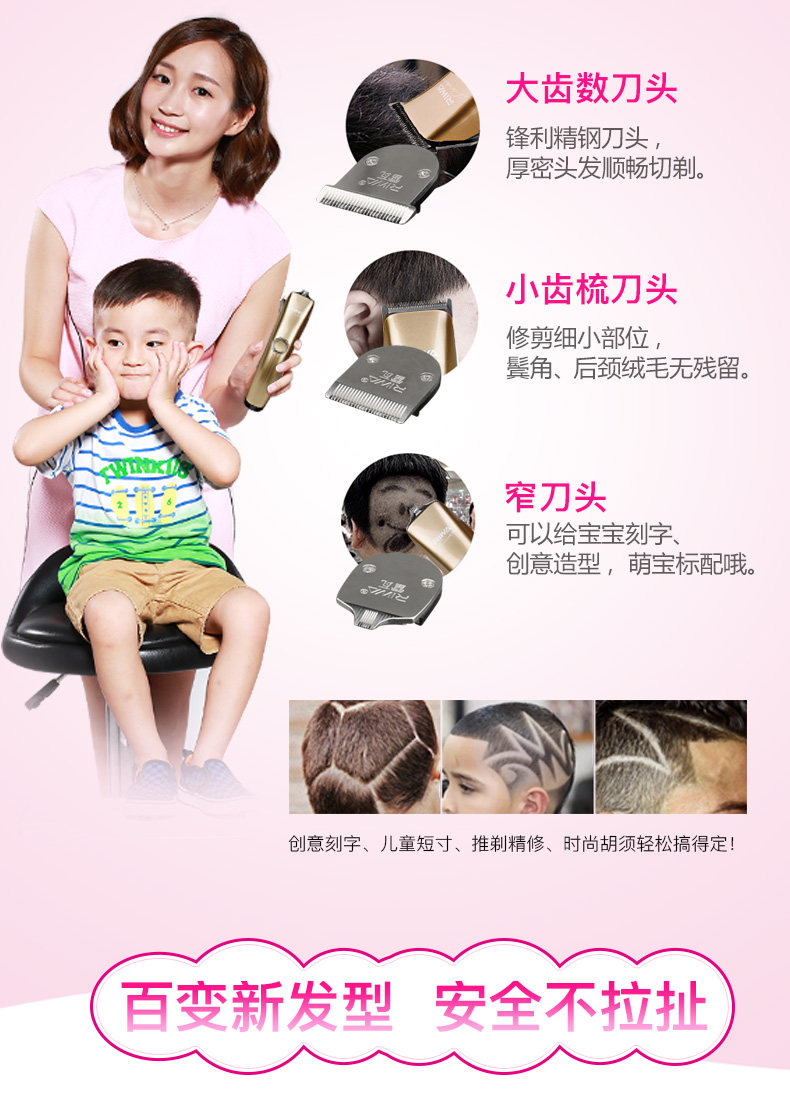 雷瓦成人理发器电推剪婴儿推子儿童充电式静音家用剃发电动剃头刀