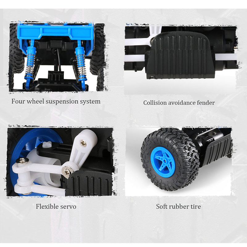 With suspension system and four wheel drive system, it is so easy for this car to conquer the grass, sand and gravel roads. Strong power provided by double motors can make the car climb 45 degree slopes. Flexible steering gear easily cope with the challenges of various road conditions. Besides, the solid frame effectively prolong the service life.