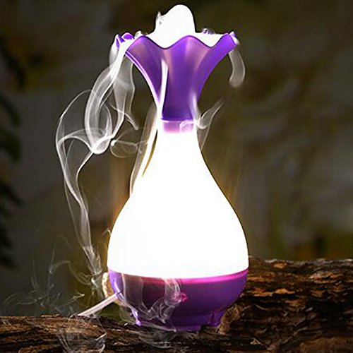 -. Feature : With design of a jade pure vase could decorate our bedroom or office. / This humidifier uses ultrasonic sound vibrations to release moisture and fragrance into the air. / Portable for office ,home, yoga, spa, Bedroom, it can Protect you in a dry environment. / The Oil diffuser can hold up to 95ml of water, works well in a single room like your baby room. And when the water stored is off, the diffuser will automatically turn off in case you do not notice it, reliablets.safe use. / Unique magic bottle design which differs from other common humidifiers makes it a perfect gift. With LED lamp, it can also be used as the little night light
