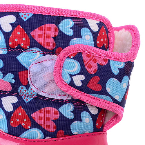 하트 모양 프린트가 스커트나 팬츠 어디에도 잘 어울려 예쁘면서 편하게 신을 수 있는 여아 부츠입니다.
