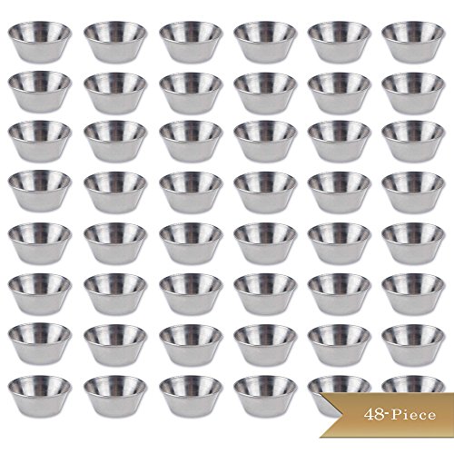 Studio : TrueCraftware Publisher : TrueCraftware Product Description Enhance presentation of your food with these elegant looking polished Set of 48 Stainless Steel Sauce Cups. They are ideal for sauces, dressings, condiments or croutons! These cups are easy to use, multi-purpose with a smooth rounded lip. Whether used for outdoor barbecues, picnics, or indoor home and restaurant dining, these sauce cups are ideal for any sauce-dipping dining occasion. 0 |