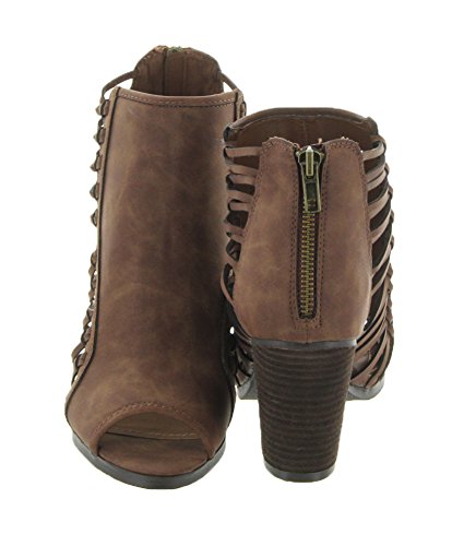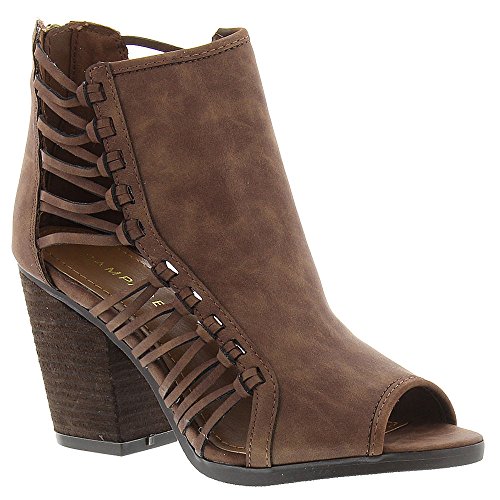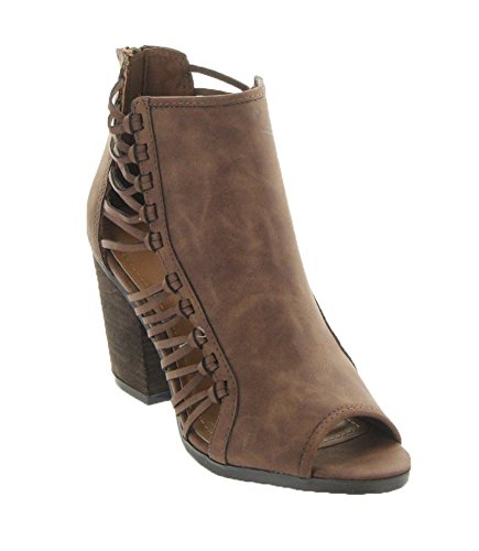 Studio : Rampage Publisher : Rampage Binding : Apparel Product Description The transition to warmer temps is made fierce in this fashion-forward styleSynthetic upper with peep toe and side cutouts with lacing detailBack zipper closure for easy on/offLightly cushioned footbed3" stacked-look heel 0