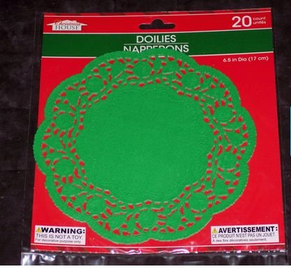 20 Count Green Paper Die Cut Doilies. 6.5" diameter.