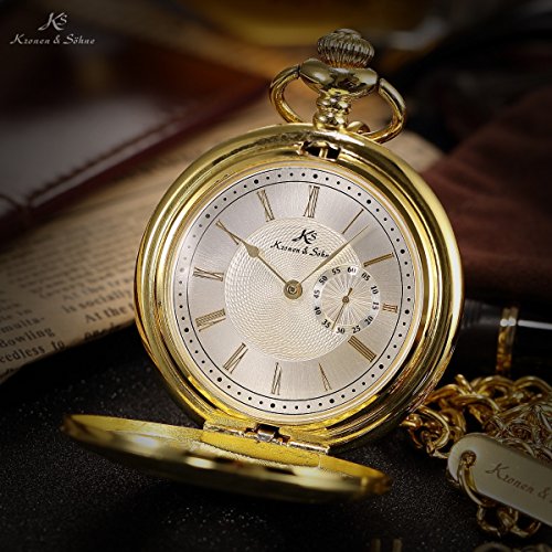 -. Title : KS Half Hunter Steampunk Hollow Antiqued Gold Case Roman Men's Japanese Quartz Pocket Watch KSP015