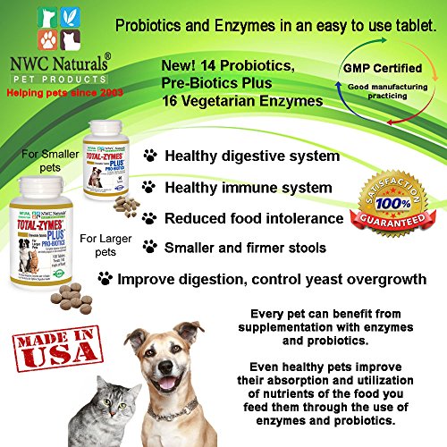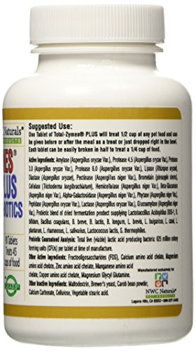 -. Title : NWC Naturals Total-Zymes Plus - 90 Tablets (1 tablet treats 1/2 cup of pet food) Enzymes and Probiotics for smaller Dogs and Cats