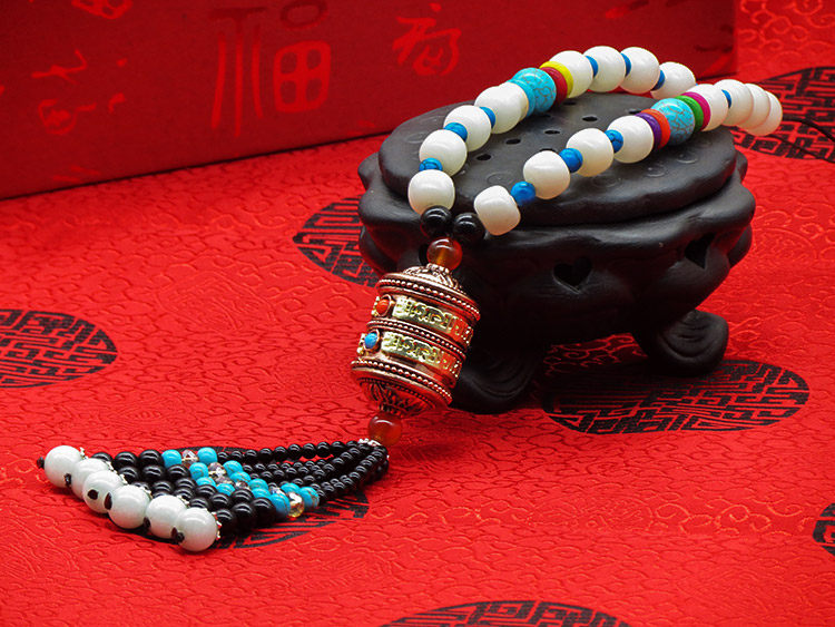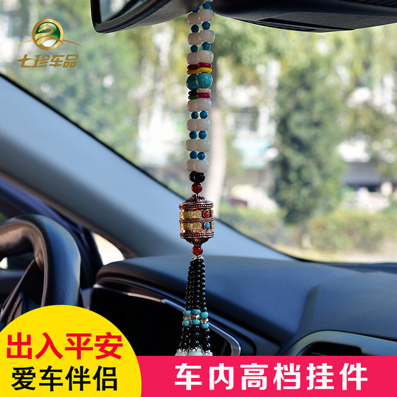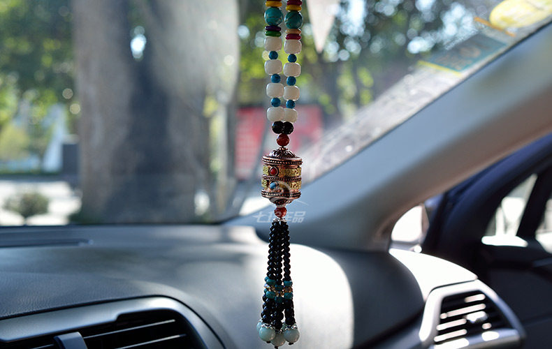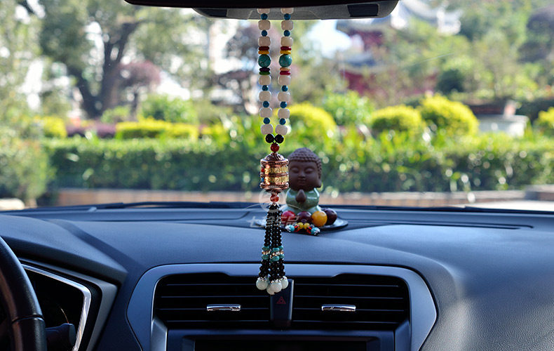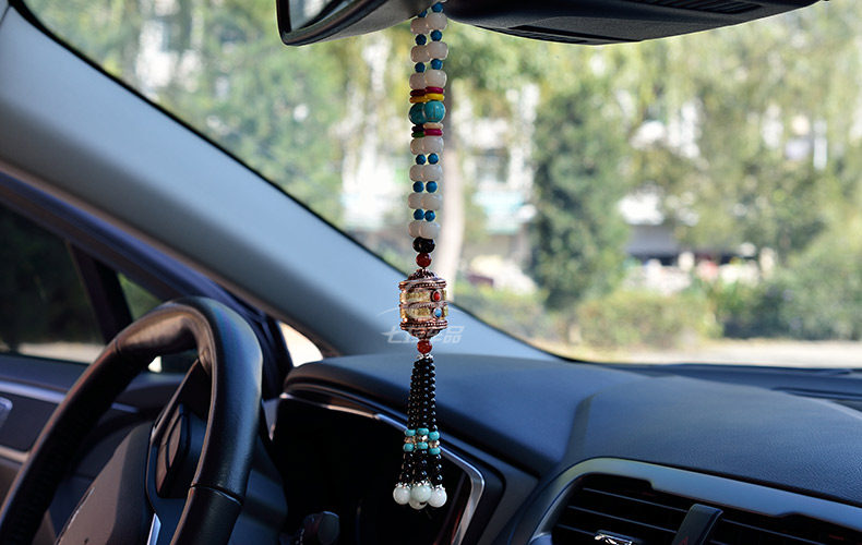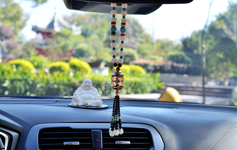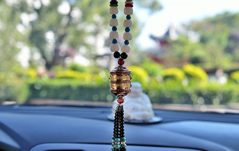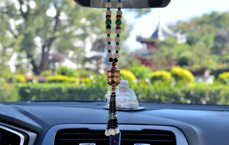 珍汽车挂件菩提子转经轮车挂高档经文保平安符转经筒水晶车饰品