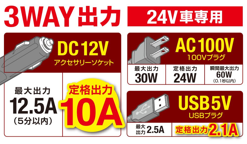 CEL-STAR (CELLSTAR) 24V car charger and 12V hybrid converter 3WAY output car accessory can be used (DC12V / USB5V / AC100V) DCU-310