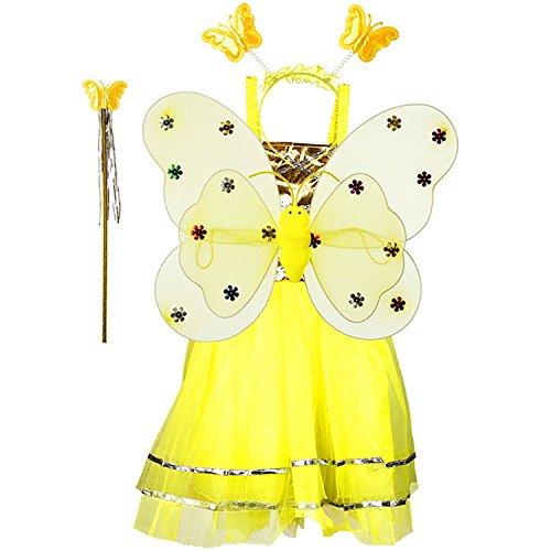 -. Title : YQWEL 4 pcs Fairy Princess Costume Set with Wings Headband Wand Tutu Skirt Set