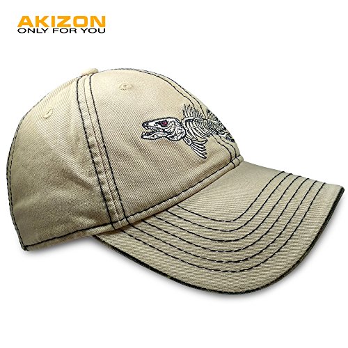 Solid plain beige tan baseball cap with fish bones made of high quality 100% unstructured washed cotton denim cap. There is a brim of not very large size and of camo paint on the bottom. All joints are well made. The fish print is protected by double layer of material from inside that results in comfortable wearing with no harm to the head. The size of the baseball hat is about 58 cm (head circumference) and easily adjustable thanks to touch fastener on the back. A touch fastener goes with a small buttonhole to adjust the proper size. Due to the size adjustability the cap fits for 54 cm to 58 cm head (from 21 to 23 inches - size from XS to L ). This cap is specially designed on the base of numerous surveys of fishermen and hunters. The brim is low sitting and the inside includes a sweatband to help wick sweat away from your brow on those sunny days. Our Trucker Hats designs are professionally printed, so your unique design will look great and make someone smile with the funny cute vintage. Treat yourself or make this baseball cap the perfect gift for Fathers Day Memorial Day Christmas birthdays anniversaries retirement Keep The Sun Out Of Your Eyes Be Stylish Again With AKIZON Fishing Baseball Caps On Your Head! Do you love ... ... fishing or hunting with your pals? ... walking or running in the middle of the day? ... outdoor activities solo or with your family? Nodding, right? Well prepare yourself because you have just found the coolest trucker cap. An absolute must have baseball cap for all fishermen travelers truck drivers sports fans hunters world explorers and yourself The brim is low sitting yet wide enough, so as to eliminate exposure to harmful sun rays and disturbing glare! Make driving or working outdoors easy again! Facilitate your life to the fullest, enhance your gaming performances and make the most of every fishing trip you take. 0 |